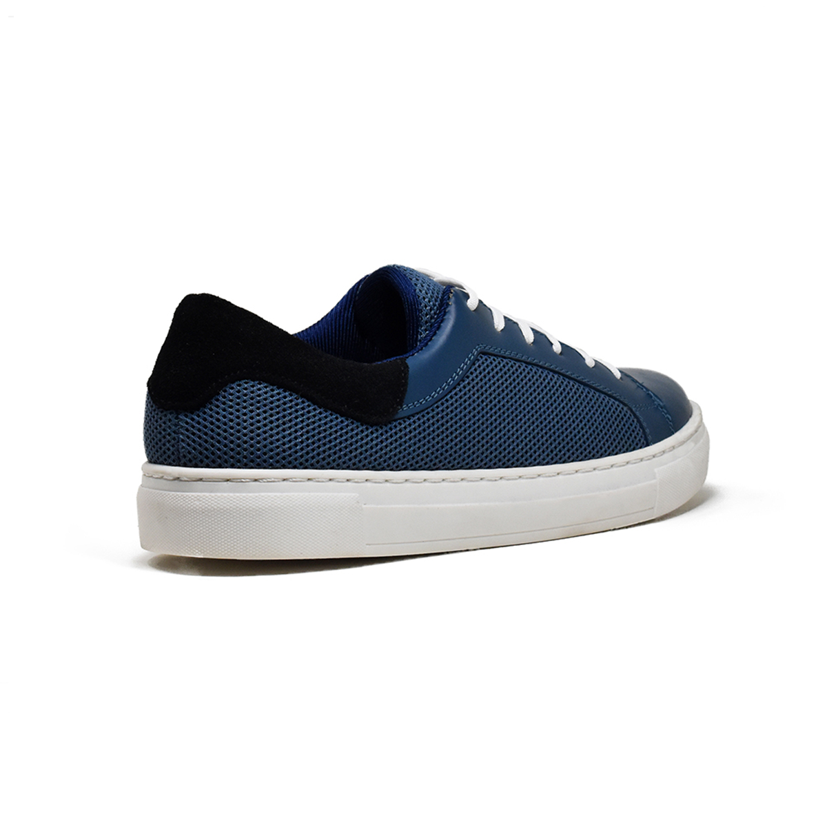 *Piel napa azul, malla textil mezclilla, gamuza negro